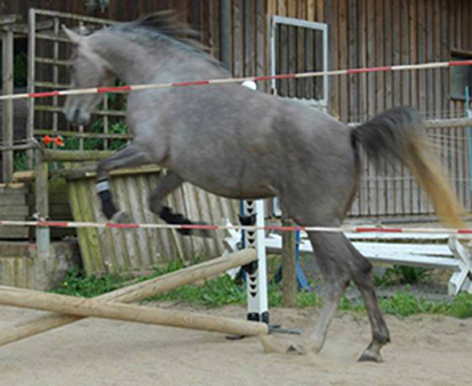 Anlongiert, sehr geschickt im Freispringen - derzeit wird sie angeritten.